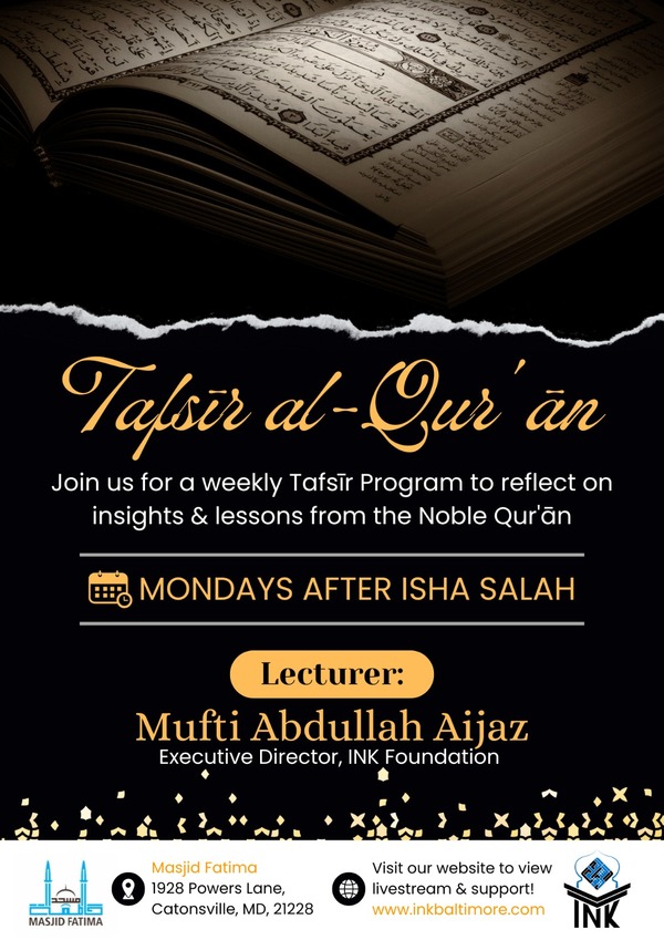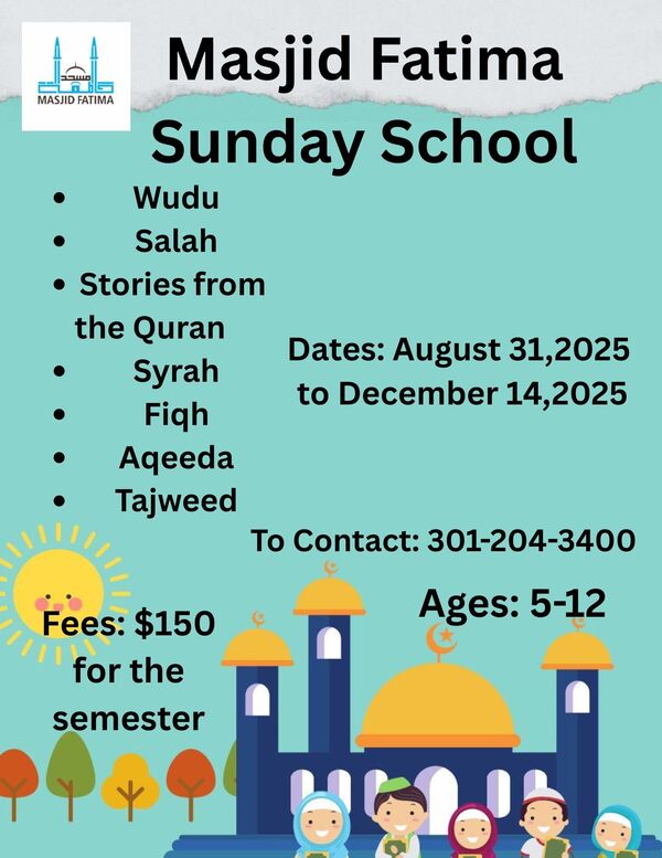 Place: Masjid Fatima, 1928 Powers Lane, Catonsville, MD, 21228